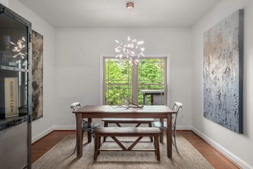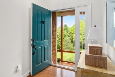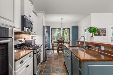 Doors lead to the covered front and back patios, where you can savor breathtaking mountain vistas and immerse yourself in the serene, fairy-tale-like beauty of the surrounding wooded landscape.